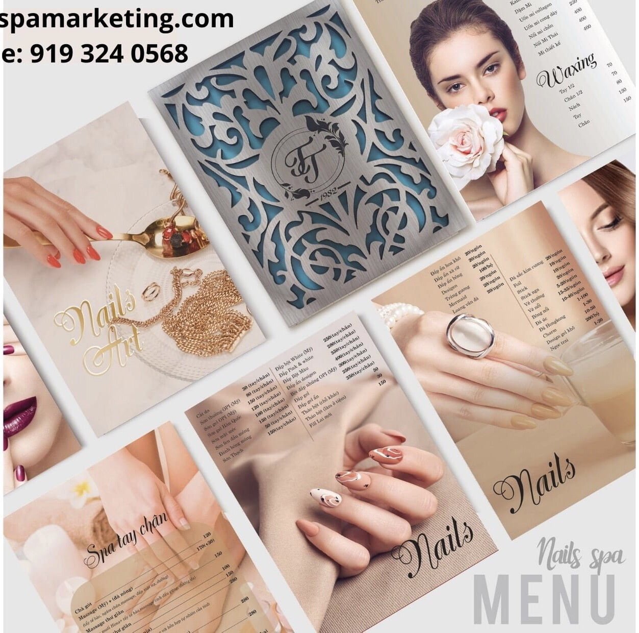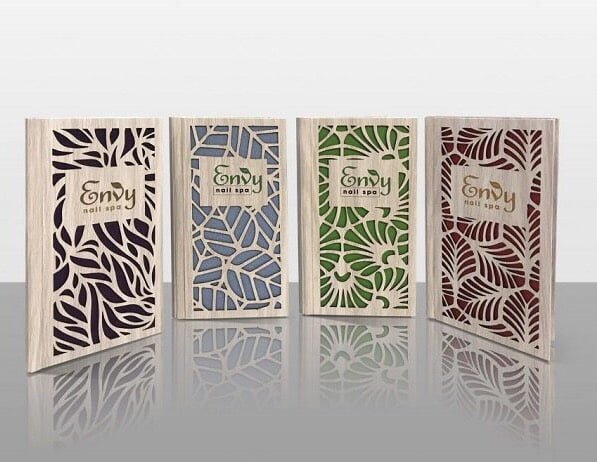 – Menu tiệm Nail & Spa bìa gỗ hoa văn