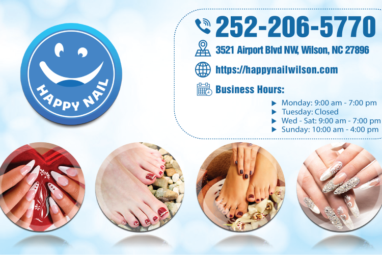 EMS xin giới thiệu đến với quý anh chị chủ tiệm nail mẫu thiết kế in ấn nhận được feedback tốt từ tiệm Happy Nail at 3521 Airport Blvd...